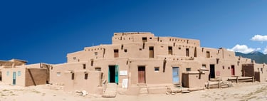 Taos Pueblo is an old village located in northern New Mexico surrounded by the Sangre de Cristo Mountains. This old village has existed for more than 1,000 years and shows how strong and creative people can be. Visiting Taos Pueblo makes you feel like you've gone back in time. The adobe homes built from sun-dried clay and straw are several stories high and are closely grouped together for protection. The natural colors of the houses mix well with the land around them. Narrow paths smoothed out by years of people walking run between the houses and lead to open areas where the smell of piñon wood smoke fills the air. Going to Taos Pueblo is more than just looking around; it changes how you see things.